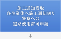 竣工申請や道路使用許可申請を行い、施工日を調整し、施工という流れになります。